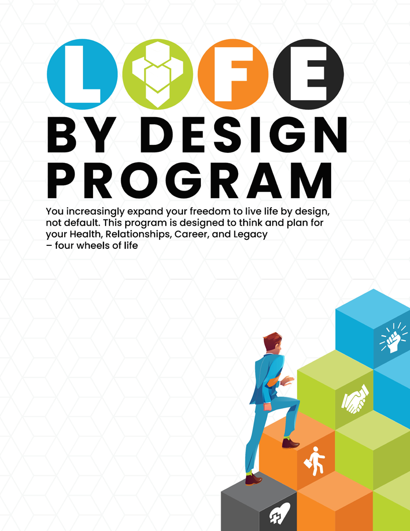 You increasingly expand your freedom to live life by design,not default. This program is designed to think and plan for your Health, Relationships, Career, and Legacy-four wheels of life
